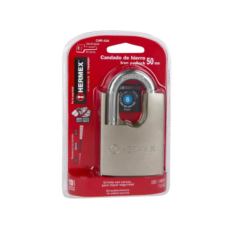 Candado anticizalla hermex. Fabricado en acero con coraza, disponible en tres tamaños.