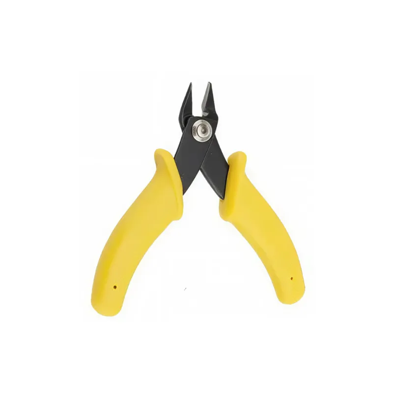 Cortafrío de precisión 8.5 cm con mango plástico amarillo y cuerpo de acero. Ideal para cortes finos en espacios reducidos.