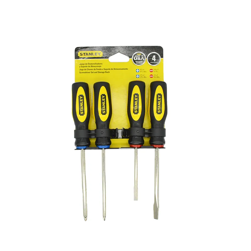 - Este juego de destornilladores de uso básico son la marca stanley. Este set está diseñado para utilizar en trabajos poco demandantes, ya sea un arreglo en la oficina, el armado de un mueble o solo realizar un ajuste pequeño.