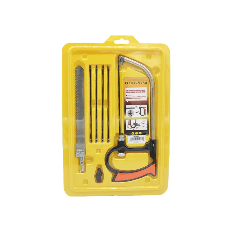 - Cuenta con 7 piezas. Un marco de segueta hecho en acero con mango y tornillo de ajuste para las hojas, 5 hojas en acero para cualquier material y una hoja sierra para cortes más grandes o para materiales más resistentes.